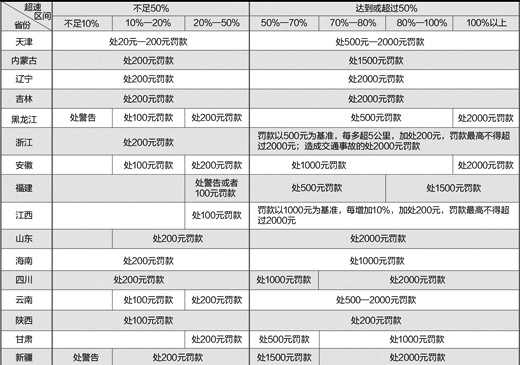 部分省份對高速公路超速的罰款規(guī)定。數(shù)據(jù)整理:郝迎燦