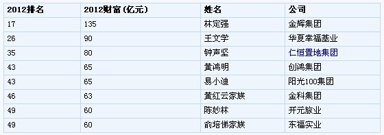 數(shù)據(jù)來源:《2012雅居樂 海南清水灣胡潤百富榜》