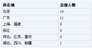 北京有14人上榜,超越廣東,緊隨其后的是廣東、上海、福建,分別11人和6人上榜。
