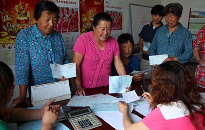 圖為北京市懷柔區(qū)懷北鎮(zhèn)東莊村村民在村委會(huì)上交新農(nóng)合醫(yī)療報(bào)銷單據(jù)。新華社發(fā)