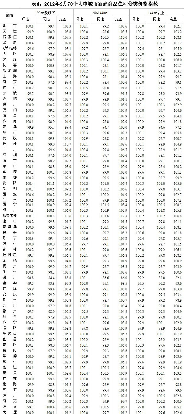 2012年9月份70個大中城市住宅銷售價格變動情況