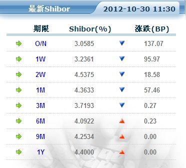 10月30日上午消息,繼央行上午進行3950億元天量逆回購后,上海銀行間同業(yè)拆放利率(Shibor)應聲回落,其中隔夜利率回落137.07基點,一周品種回落95.75基點?傮w而言,期限越短,回落越明顯。