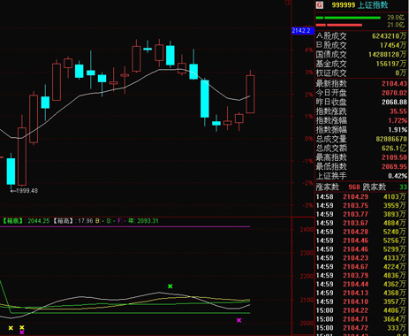 上證綜指收漲1.72%,報2104.43點;成交人民幣626億元,較昨日放大45%。
