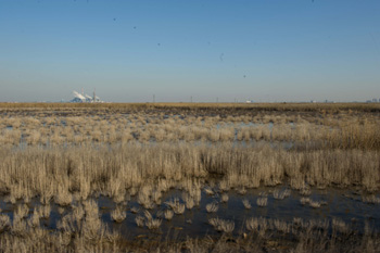 天津市北大港濕地自然保護區(qū)冬季濕地蘆葦整體情況。記者