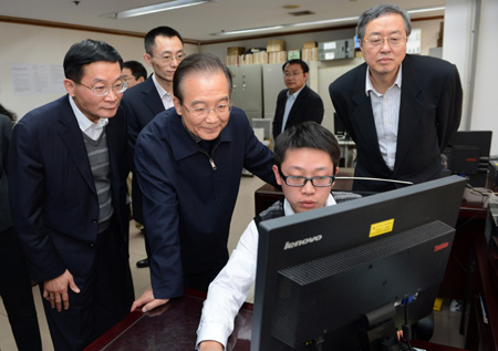 1月21日,國務(wù)院總理溫家寶來到中國人民銀行調(diào)研,看望調(diào)查統(tǒng)計(jì)司、貨幣政策司等司局工作人員,在金融信息中心聽取國庫業(yè)務(wù)系統(tǒng)和個(gè)人、企業(yè)征信系統(tǒng)建設(shè)及應(yīng)用情況介紹。溫家寶在隨后的座談會(huì)上強(qiáng)調(diào),進(jìn)一步推進(jìn)金融改革,加強(qiáng)現(xiàn)代金融企業(yè)制度建設(shè),穩(wěn)步推進(jìn)利率市場化,完善人民幣匯率形成機(jī)制,擴(kuò)大人民幣在跨境貿(mào)易和投資中的使用,逐步實(shí)現(xiàn)人民幣資本項(xiàng)目可兌換。