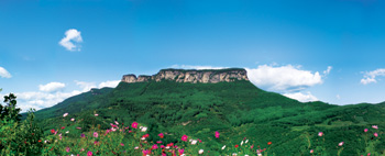 除了豐富的高句麗遺跡外,五女山主峰海拔824米,山峰酷似玲瓏翠屏,四周懸崖峭壁,巍峨險(xiǎn)峻。山頂?shù)貏萜教梗临|(zhì)肥活,草木茂盛。南面有一隘口,乘纜車可達(dá)山頂。站在東端峰巔,遙望遼寧省最大的水庫桓龍湖,煙波浩渺,云天山水,渾然一體。