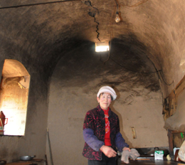 | 鎮(zhèn)原縣平泉鎮(zhèn)麻王村村民張清芳在自家廚窯里收拾案板,她頭頂窯背上一條長長的裂縫是石油勘探放炮時(shí)震出的。 |