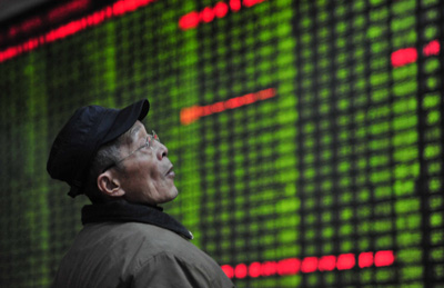 圖為當(dāng)日股民在江西九江市內(nèi)一家證券公司營(yíng)業(yè)部關(guān)注股市行情。