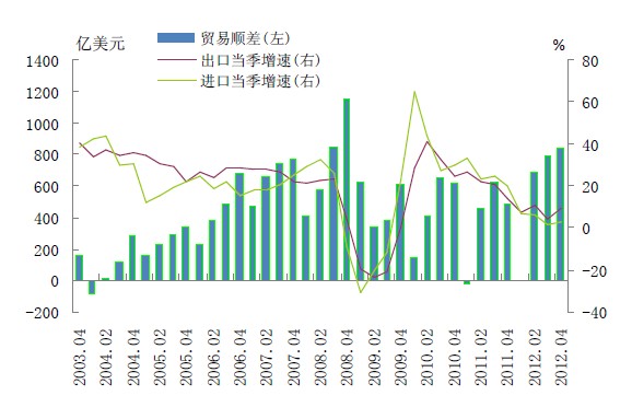 受國(guó)際大宗商品價(jià)格總體下跌等因素影響,進(jìn)口價(jià)格下降。2012年各季度,紐約商品交易所原油期貨當(dāng)季平均價(jià)格分別環(huán)比上漲9.5%、-9.4%、-1.2%和-4.3%,累計(jì)下降6.2%。2012