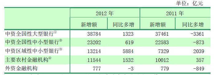 表1 2012 年分機(jī)構(gòu)人民幣貸款情況