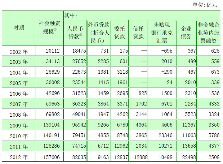 初步統(tǒng)計(jì),2012 年全年社會(huì)融資規(guī)模為15.76