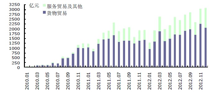 經(jīng)常項(xiàng)目收支繼續(xù)保持基本平衡,資本和金融項(xiàng)目呈現(xiàn)凈流出。據(jù)國(guó)家外匯管理局初步統(tǒng)計(jì),2012 年經(jīng)常項(xiàng)目總順差2138