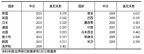 部分國(guó)家基尼系數(shù)
