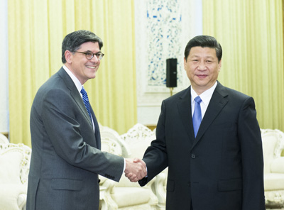 國(guó)家主席習(xí)近平19日在人民大會(huì)堂會(huì)見(jiàn)美國(guó)總統(tǒng)特別代表、財(cái)政部長(zhǎng)雅各布·盧。