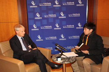 邁克爾·斯賓塞教授接受本報記者采訪。 |