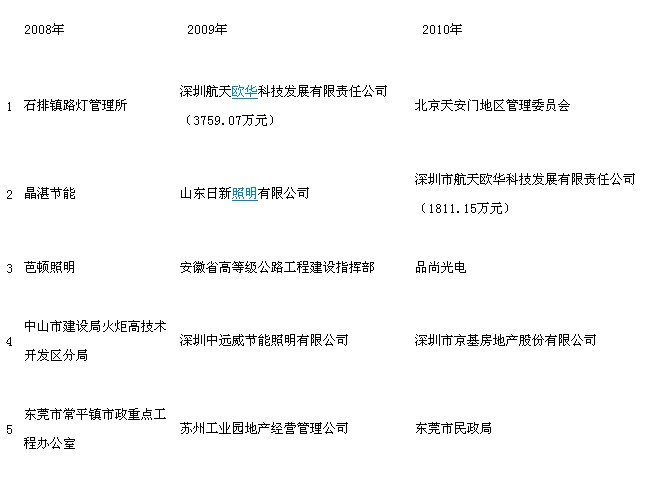 顯然,仔細梳理上述勤上光電的2008年到2011年上半年內銷大客戶不難發(fā)現一個有趣的現象,即這些客戶一般只會出現一次。比如晶湛節(jié)能和芭頓照明出現在勤上光電2008年內銷前五大客戶名單中,但隨后內銷大客戶中便沒有它們的名字。