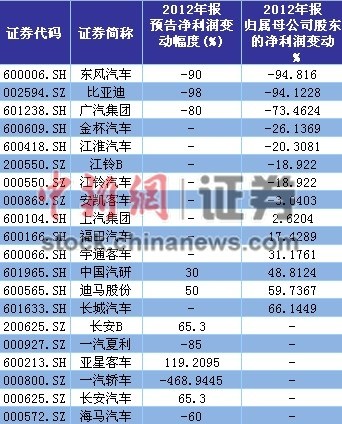 逾半數(shù)上市車企2012年業(yè)績下滑 東風汽車凈利降逾9成