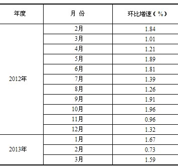 根據(jù)季節(jié)調(diào)整模型自動修正程序,對2012年2月份以來的固定資產(chǎn)投資(不含農(nóng)戶)環(huán)比增速進行修訂。修訂結果及2013年3月份環(huán)比數(shù)據(jù)如下: