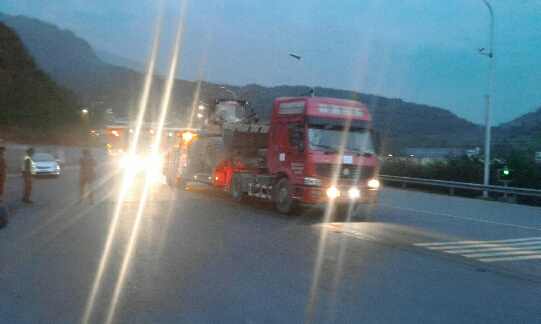 4月20日晚,裝載重型機(jī)械的救援車隊從雅西高速滎經(jīng)出口往蘆山縣。