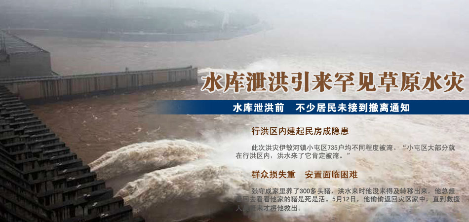 5月6日,因上游來水過大,內(nèi)蒙古自治區(qū)呼倫貝爾市境內(nèi)紅花爾基水庫(kù)緊急泄洪,目前造成下游鄂溫克族自治旗(以下簡(jiǎn)稱鄂溫克旗)、海拉爾區(qū)1人失蹤,近萬人受災(zāi),牲畜死亡失蹤近5000頭只,成為當(dāng)?shù)?998年以來罕見的水災(zāi)!督(jīng)濟(jì)參考報(bào)》記者調(diào)查了解到,除天災(zāi)之外,水庫(kù)泄洪時(shí)機(jī)不當(dāng)、撤離通知不到位、行洪區(qū)內(nèi)私搭亂建、干部群眾思想麻痹等并不罕見的“人為因素”,也是造成這場(chǎng)嚴(yán)重災(zāi)情的重要原因,更應(yīng)引起反思。