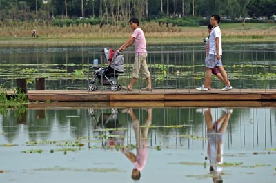 位于成都市錦江區(qū)拍攝的“六湖八濕地”之一的白鷺溪生態(tài)濕地。