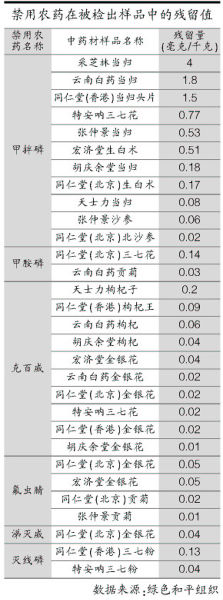 日前,綠色和平組織發(fā)布調(diào)查報(bào)告稱,其購(gòu)自同仁堂、云南白藥、天士力、九芝堂等九家品牌藥店的多種常用中藥材,超過(guò)七成被檢測(cè)出含有多種農(nóng)藥殘留。