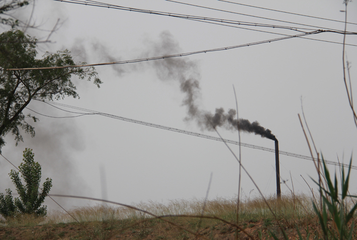 從廠門口往里看,露天工地上正揚起滾滾灰塵,車間里還不時有黃煙排出;向空中遠遠望去,高爐里不斷冒出一股股黑煙,在大風的作用下飄散升騰,不斷向下風向的村莊里移動,空氣中可以聞到淡淡的鐵銹味。