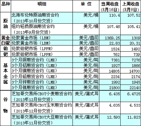 國際大宗商品期貨價格明細表[2013-08-19]