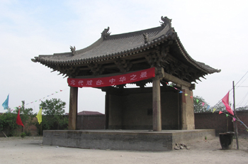 魏村牛王廟元代戲臺(tái)位于魏村鎮(zhèn)魏村。戲臺(tái)建于元初至元二十年(1283年)。戲臺(tái)平面呈正方形,寬7.55米,臺(tái)基高1.4米,為典型的單檐歇山頂建筑。4角立柱,前2根為抹角石雕。臺(tái)周3面敞廊,無(wú)前后臺(tái)之分。頂部為精構(gòu)巧架的藻井,整個(gè)建筑精巧別致,古樸典雅,是我國(guó)現(xiàn)存最久遠(yuǎn)的戲臺(tái)建筑。
