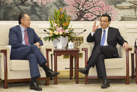 9月16日,國(guó)務(wù)院總理李克強(qiáng)在北京人民大會(huì)堂會(huì)見世界銀行行長(zhǎng)金墉。