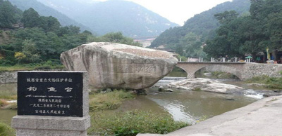釣魚臺位于磻溪河上,因西周名士姜子牙在此隱居十載,滋泉釣干遇文王而聞名于世,史料典籍多有記載!敖烎~愿者上鉤”語出于此。這里南依秦嶺,北望渭水,山清水秀,古柏疊翠,景色綺麗,歷史久遠,是頗負盛名的游覽勝地。