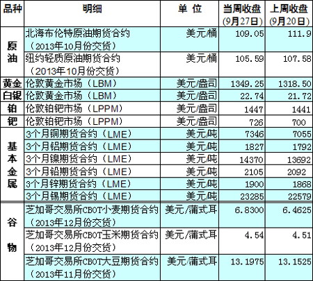國際大宗商品期貨價格明細(xì)表[2013-09-30]