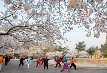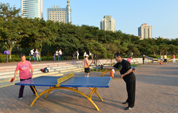 市南區(qū)的居民在休閑廣場健身運動。 |