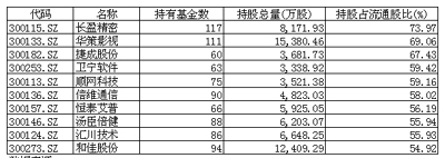 半年報基金控盤程度最高的10只創(chuàng)業(yè)板股票 |