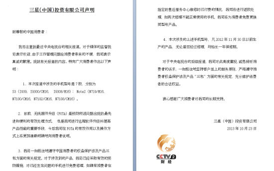 · 三星就問題手機(jī)向中國消費(fèi)者致歉 2013-10-24