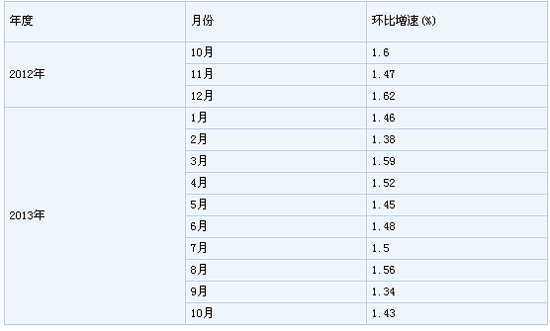 根據(jù)季節(jié)調(diào)整模型自動修正程序,對2012年10月份以來的固定資產(chǎn)投資(不含農(nóng)戶)環(huán)比增速進(jìn)行修訂。修訂結(jié)果及2013年10月份環(huán)比數(shù)據(jù)如下: