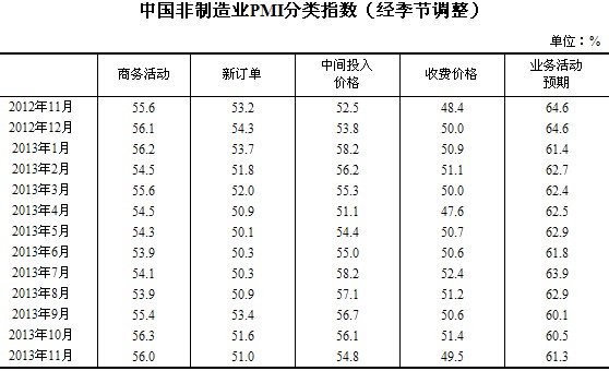 · 10月中國(guó)官方非制造業(yè)PMI為56.3% 創(chuàng)年內(nèi)新高 2013-11-04