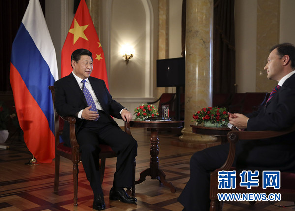習近平:去年3月,我在當選中國國家主席幾天后,就應普京總統(tǒng)邀請來到貴國進行國事訪問,貴國是我當選中國國家主席后第一個訪問的國家。那次,我同普京總統(tǒng)進行了長時間的議題廣泛、坦誠深入的交流,就加強中俄全方位戰(zhàn)略協(xié)作達成重要共識,作出全面規(guī)劃。此后我們又4次會晤和見面。昨天,我同普京總統(tǒng)會晤時共同作了回顧。我們共同推動兩國在涉及彼此核心利益的重大問題上相互堅定支持,把兩國關(guān)系的政治優(yōu)勢轉(zhuǎn)化為合作優(yōu)勢,雙方經(jīng)貿(mào)、能源、高技術(shù)、地方、人文、國際事務等各領(lǐng)域合作取得豐碩成果,促進了兩國共同發(fā)展繁榮,維護了國際公平正義和世界和平穩(wěn)定。我對中俄關(guān)系發(fā)展取得的成果十分滿意。當前中俄關(guān)系發(fā)展是基礎最牢、互信最高、地區(qū)和國際影響最大的一個時期。