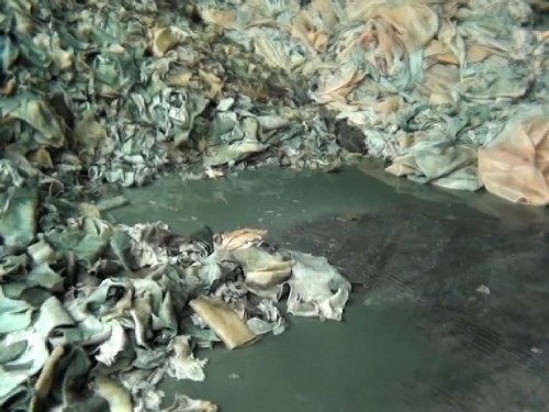 在河北省無極縣,一家制革廠的負(fù)責(zé)人對記者說:這種垃圾皮料不會輕易腐爛的,硫化鈉,基本上就是保鮮了。再用上石灰、火堿等工業(yè)原料,放十天二十天的都不會壞,也不會生蟲。