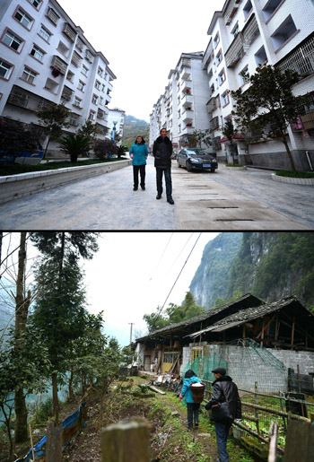 近些年,一批批惠農(nóng)政策的實施,讓湖北省恩施土家族苗族自治州宣恩縣的董興林看到了進(jìn)城的希望。農(nóng)業(yè)稅費(fèi)減免、城鄉(xiāng)居民養(yǎng)老保險、廉租房、農(nóng)村合作醫(yī)療等惠民政策,解決了董興林一家人進(jìn)城的后顧之憂。讓董興林感到更加高興的是,當(dāng)?shù)卣一次性分配給董興林一家4套廉租房。2011年1月,董興林一家終于實現(xiàn)了他們的“進(jìn)城”夢。左圖為董興林與妻子在縣城里的廉租房小區(qū)散步。右圖為2013年12月18日拍攝的董興林在深山中的老家。新華社發(fā)(宋文