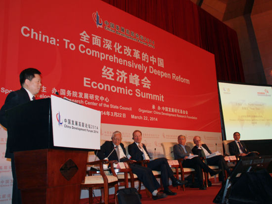 “中國(guó)發(fā)展高層論壇2014”于3月22日-24日在釣魚臺(tái)舉行。圖為“改革優(yōu)先序與短期增長(zhǎng)風(fēng)險(xiǎn)”分會(huì)場(chǎng)。