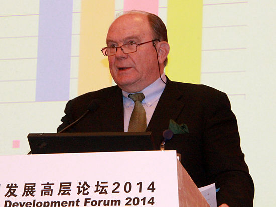“中國(guó)發(fā)展高層論壇2014”于3月22日-24日在釣魚(yú)臺(tái)舉行。上圖為瑞士再保險(xiǎn)公司董事長(zhǎng)康浩志在《透視政府債務(wù)風(fēng)險(xiǎn)》主題論壇發(fā)言。