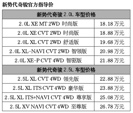 此次,新勢(shì)代奇駿2.0L