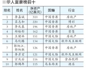 華人富豪榜前十(圖片來源:京華時報(bào))