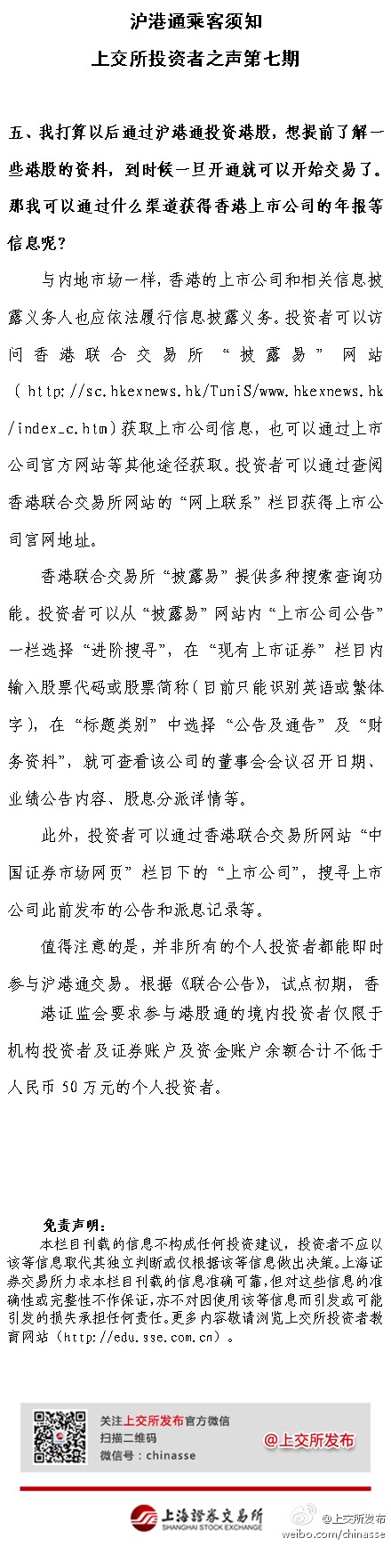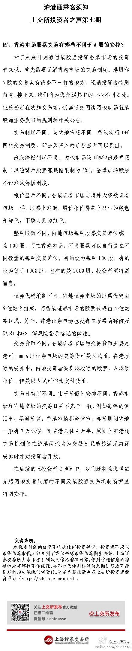 針對“滬港通的推出對我們投資者有什么好處?”的問題,上交所在微博上回應(yīng):滬港通是我國資本市場對外開放的重要內(nèi)容,有利于加強兩地資本市場聯(lián)系,有利于資本市場雙向開放及人民幣國際化,可能為內(nèi)地市場吸引更多的境外資金。