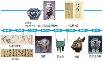 2007年與2009年,蘇富比與佳士得相繼對圓明園馬首、圓明園鼠首與兔首進行了拍賣,中華搶救流失海外文物專項基金委員會對此提出了強烈反對,最終由法國的皮諾家族在2013年將該收藏捐贈給中國國家博物館。