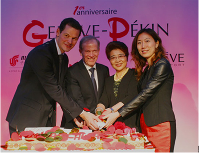 Limited,簡稱“國航”)北京日內(nèi)瓦航線開通一周年慶;顒(dòng),在國航日內(nèi)瓦營業(yè)部在萊蒙湖畔的威爾遜總統(tǒng)酒店舉行。中國駐瑞士大使許鏡湖、日內(nèi)瓦州議會(huì)副議長皮埃爾·默岱、日內(nèi)瓦國際機(jī)場(chǎng)首席執(zhí)行官羅伯特·德隆、國航日內(nèi)瓦營業(yè)部總經(jīng)理王凡以及中瑞各界人員約150