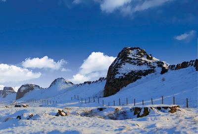 從寧夏回族自治區(qū)銀古一級(jí)公路往東行駛8公里,您便可以不為“不到長(zhǎng)城非好漢”而感到遺憾了,因?yàn)橄笳髦腥A民族勤勞、智慧的古長(zhǎng)城就在你的腳下。位于鄂托克前旗上海廟鎮(zhèn)西部的明代長(zhǎng)城遺址,西起黃河?xùn)|岸向東綿延數(shù)百公里,在鄂托克前旗境內(nèi)長(zhǎng)達(dá)53.3公里。它雖經(jīng)歷了數(shù)百年的風(fēng)風(fēng)雨雨,但整體依舊完好,由黃土夯筑,夯層為8至12厘米,墻體和墩臺(tái)(敵臺(tái))構(gòu)成主體,墩臺(tái)排列整齊,每墩相距150米。歷經(jīng)滄桑的墩臺(tái)現(xiàn)在仍然高達(dá)12米,墻體高6.5米。流經(jīng)寧夏靈武縣的水洞溝河,從長(zhǎng)城的豁口處穿過(guò),此豁口為這段長(zhǎng)城的防御重地,筑有關(guān)城和其他重要防御設(shè)施。明長(zhǎng)城在該旗境內(nèi)共有7處烽火臺(tái)遺址。