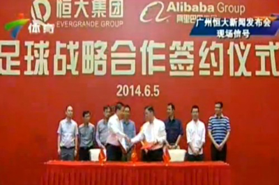 許家印在現(xiàn)場透露,一年前自己就開始邀請馬云“玩”足球,但馬云一直在思考。在前幾日的香港飯局中,許家印笑稱自己將馬云“灌醉”。用真誠打動了馬云。而雙方只用了15分鐘便決定共同合作,并定于今天上午11點11分簽約。