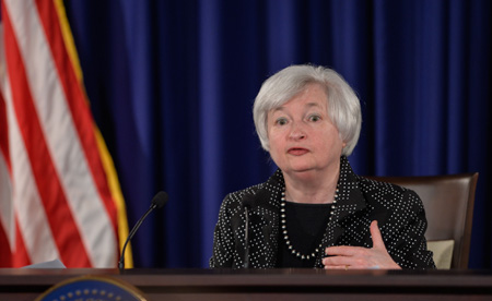 圖為美聯(lián)儲(chǔ)主席耶倫當(dāng)日出席在美國(guó)首都華盛頓召開(kāi)的貨幣政策例會(huì)新聞發(fā)布會(huì)。